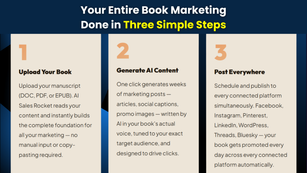 If you want to increase book visibility and automate your marketing, AI Sales Rocket offers a beginner-friendly solution.