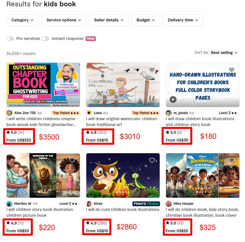How much Kids Book creators earn as a Freelancer In Fiverr