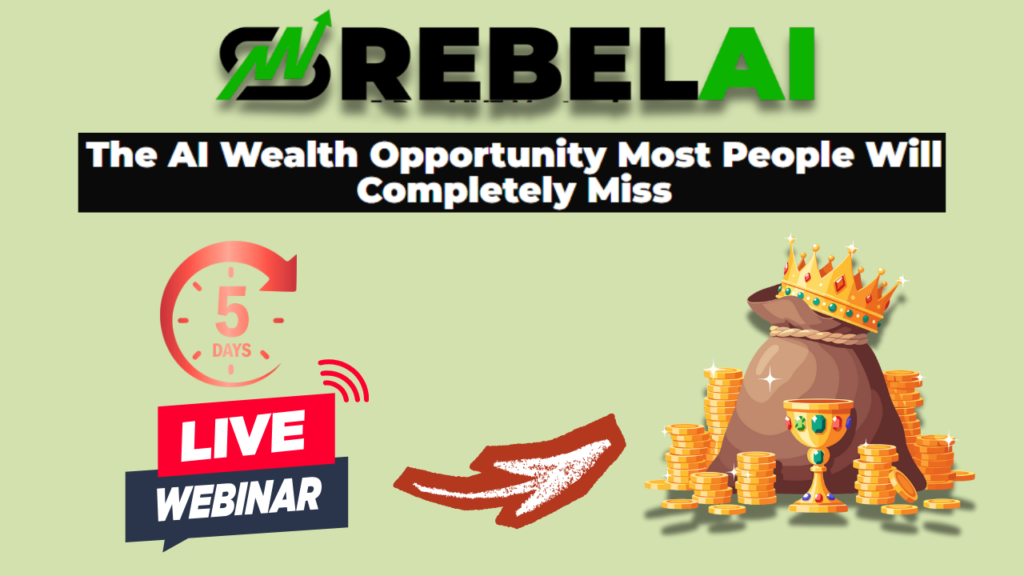Rebel AI is a 5-day live training program that teaches a simple AI-focused trading system designed for people who want consistent income without the headaches of traditional online businesses.